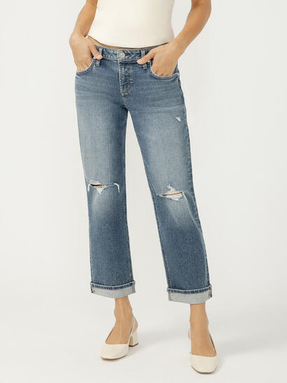 If the perfect laid-back jean is what you’re looking for, our Boyfriend fit is it, featuring a roomy, comfortable hip and thigh that tapers down to a slim leg. It’s designed with our everyday mid rise and also features our eased waistband, which means you can say goodbye to digging and pinching for good.